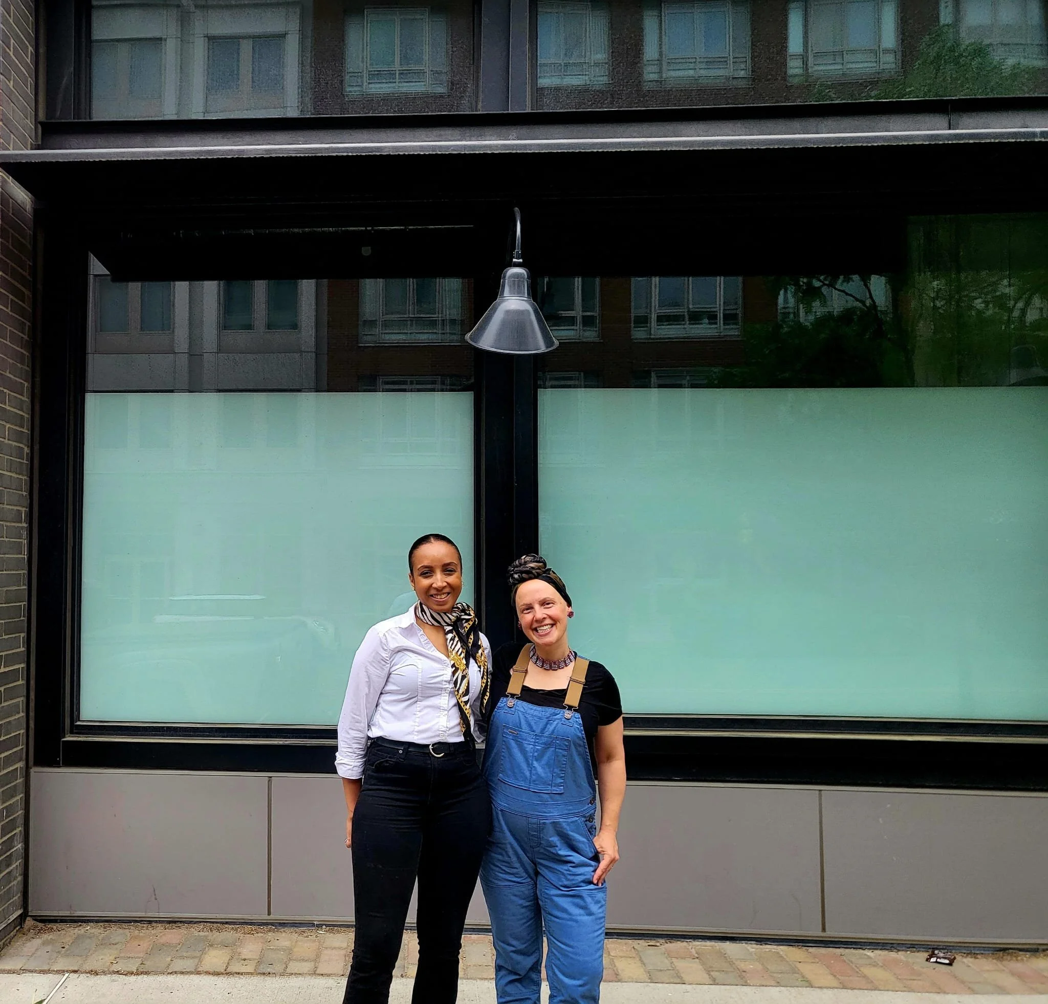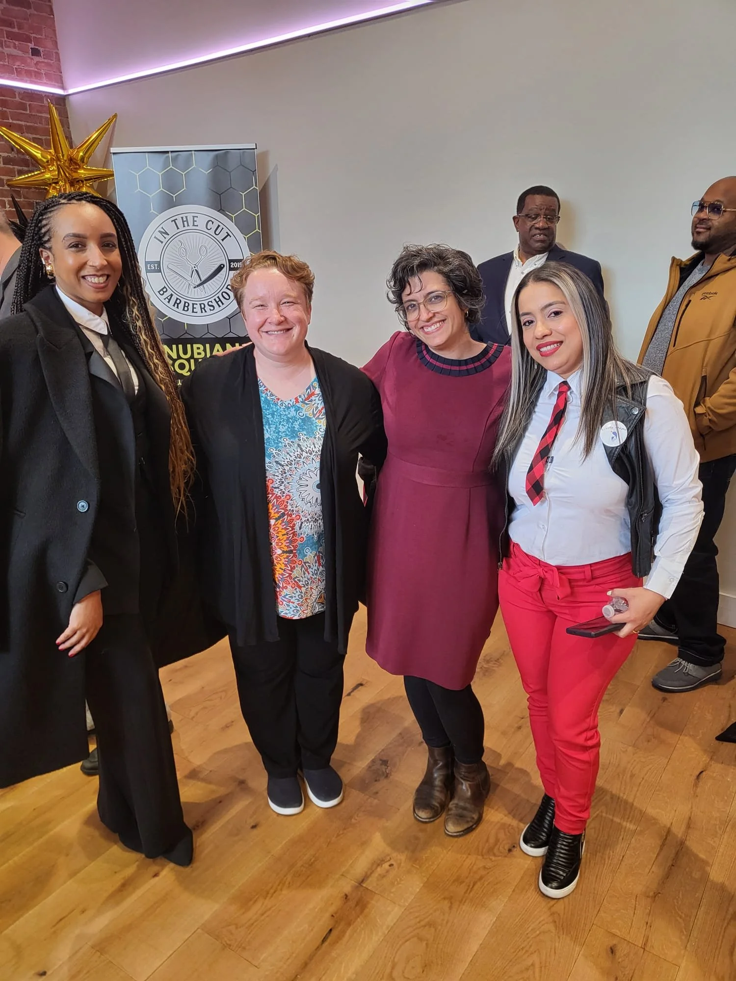 Raquel Semedo owner and founder of Lisboa Cafe, Emily Patrick and Alia Forrest from the City of Boston and Evelyn Sanchez another space grant awardee.